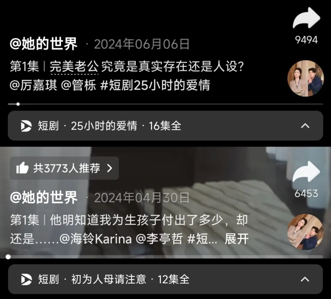 从题材来看,品牌微短剧一直以女频为年夜头,多讲述婚姻、恋爱、亲情等话题。